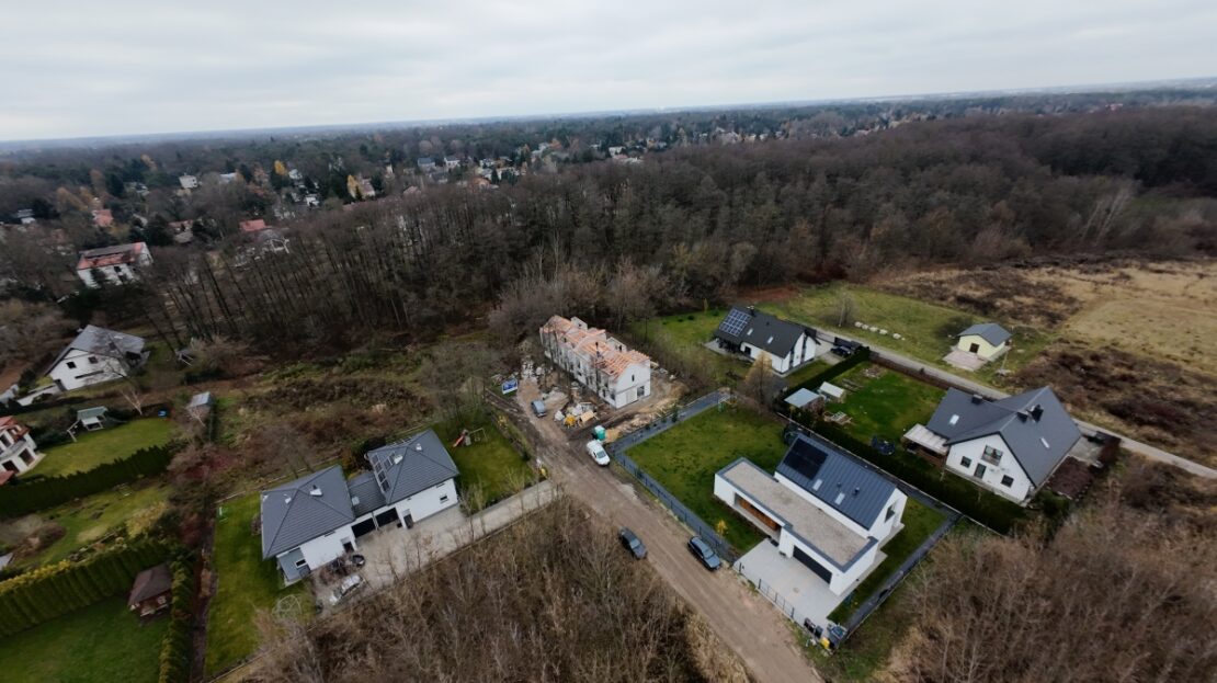 Inwestycja położona jest na końcu spokojnej, zielonej uliczki wśród drzew – idealne miejsce dla rodzin i osób szukających wytchnienia.