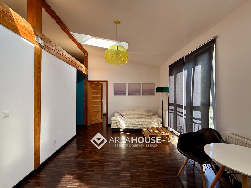 Mieszkanie ma powierzchnie 47m2, a w tym: Salon z aneksem kuchennym oraz antresolą, sypialnia oraz łazienka z WC. Znajduję się na 3 piętrze w 3 piętrowym budynku z lat 50-tych.