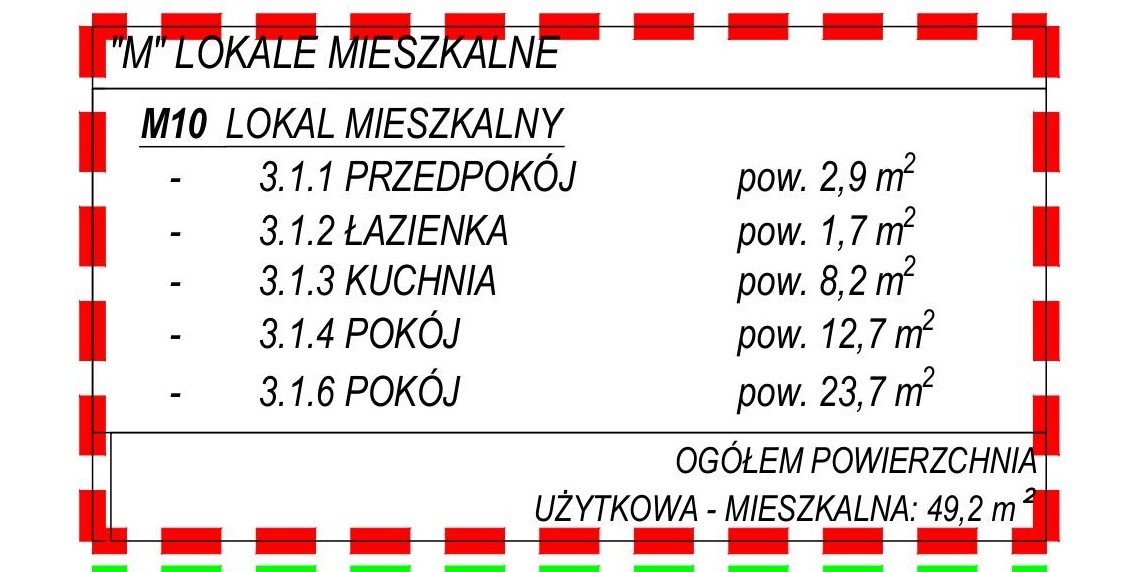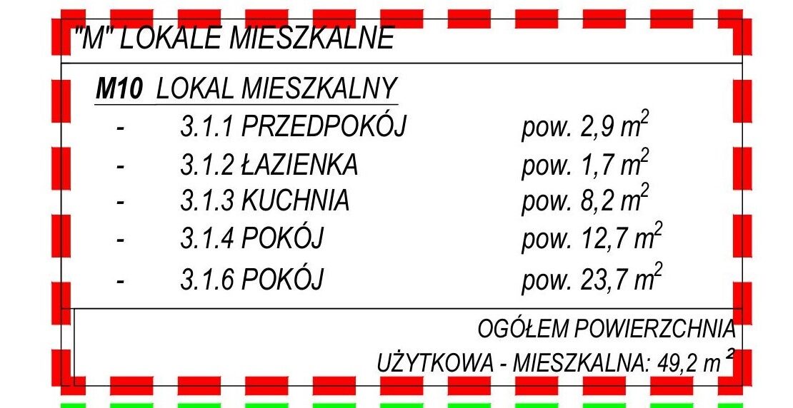 Mieszkanie znajduje się na 3 piętrze w 3-piętrowej kamienicy, co zapewnia kameralną atmosferę. Łączna powierzchnia mieszkania wynosi 49,20 m2: