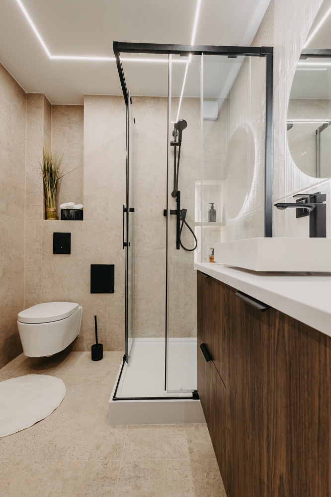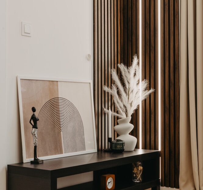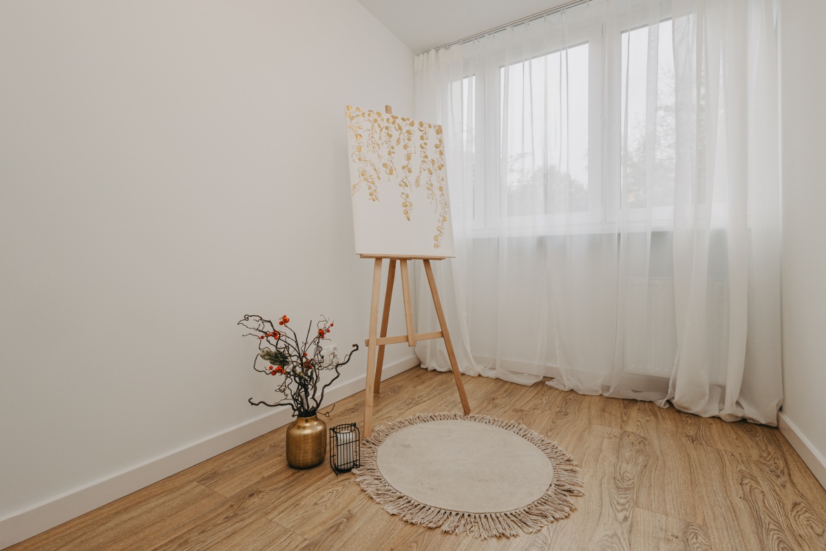 Remont obejmował: wymianę instalacji elektrycznych i wod.-kan., gładzie gipsowe i nowe panele, wymianę stolarki drzwiowej wewnętrznej, nowoczesną łazienkę z pełnym wyposażeniem. Wszystkie materiały wykorzystane w trakcie remontu są wysokiej jakości, a aranżacja została wykonana z dbałością o detale.