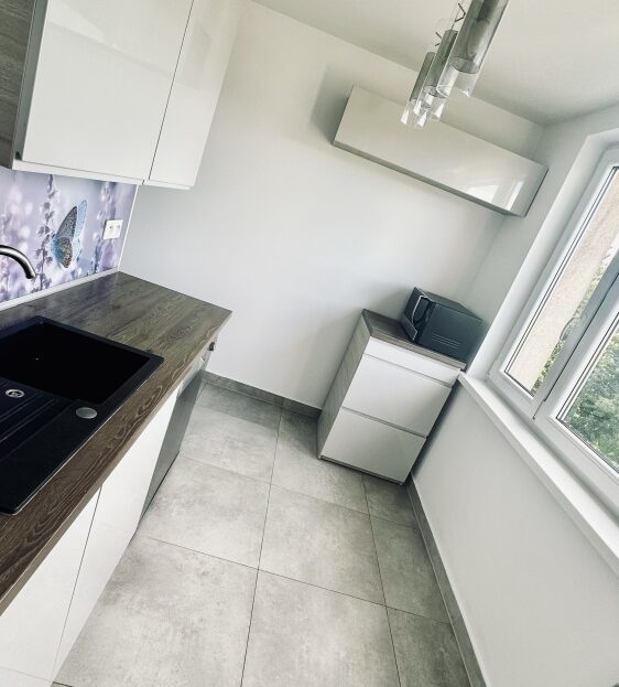 Mieszkanie przeszło generalny remont, obejmujący m. In.:
