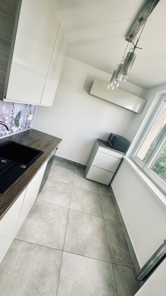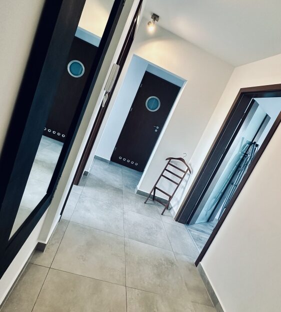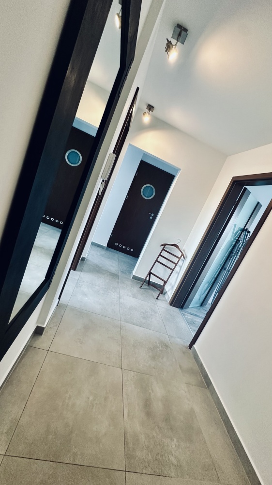 Prezentowane zdjęcia pokazują lokal z wyposażeniem, aktualnie trwa jego częściowe usuwanie (natomiast meble kuchenne i łazienkowe, duża biała szafa z drzwiami przesuwnymi, rama łóżka w okleinie naturalnej wenge, wieszak TV – kable w tunelu podtynkowym, duży stół i stoliczek kawowy do usunięcia na życzenie Kupujących)