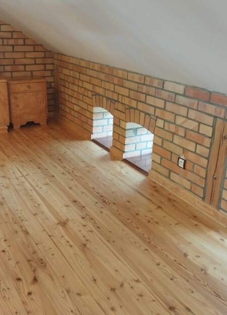 Drewniane podłogi (parkiet), kuchnia i piwnica – płytki
