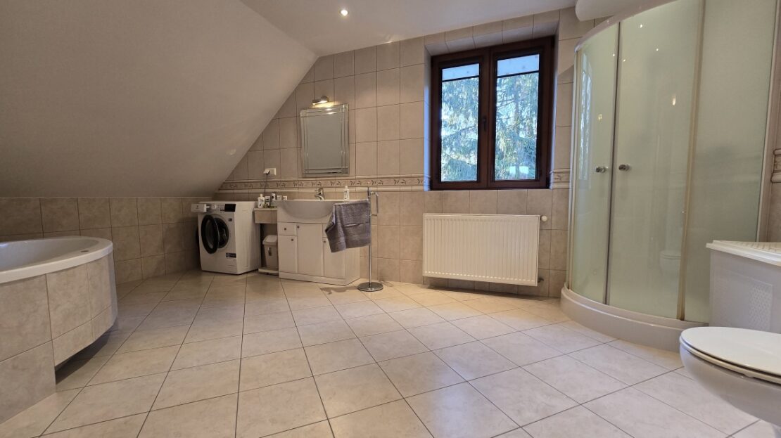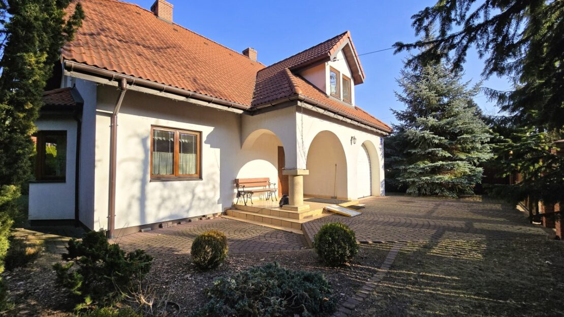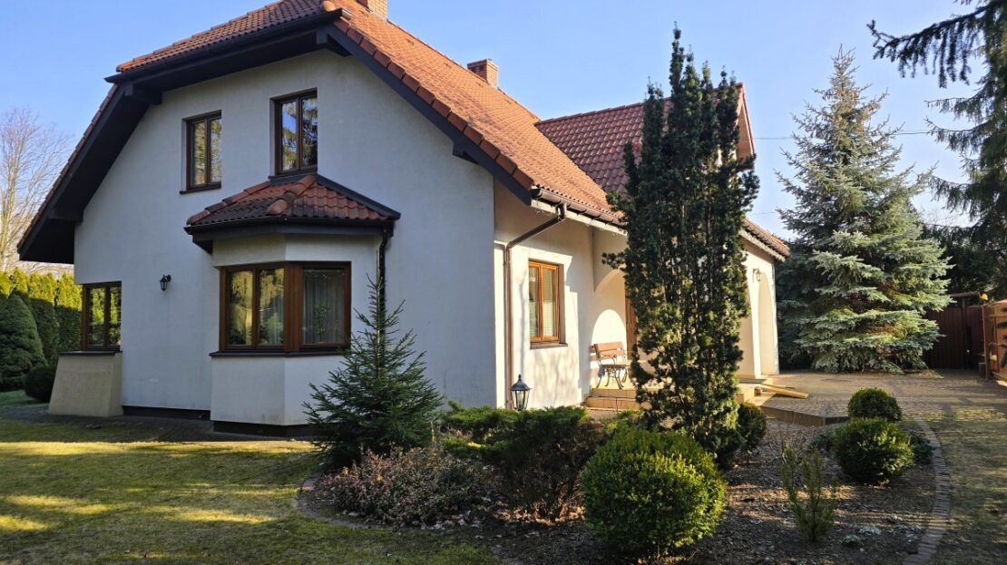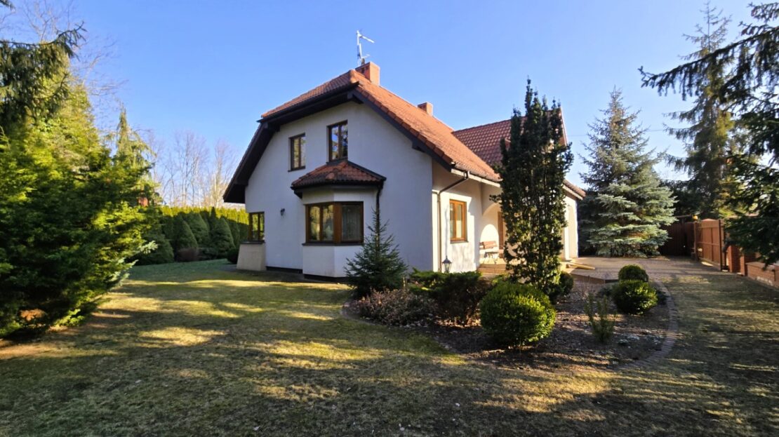 Dom był budowany dla siebie i z pewnością technicznie przewyższa obecne „standardy” stosowane przez deweloperów lub osoby budujące pod kątem sprzedaży. Budynek został wykonany w 2003 roku w technologii tradycyjnej z cegły typu POROTHERM o grubości 30 cm, ocieplony styropianem 10 cm i zabezpieczony tynkiem cementowo-wapiennym. Na dachu została położona dachówka ceramiczna firmy BRAAS. Bez zarzutu działający piec grzewczy firmy De Dietrich oraz system alarmowy to kolejne plusy, o których warto napisać.