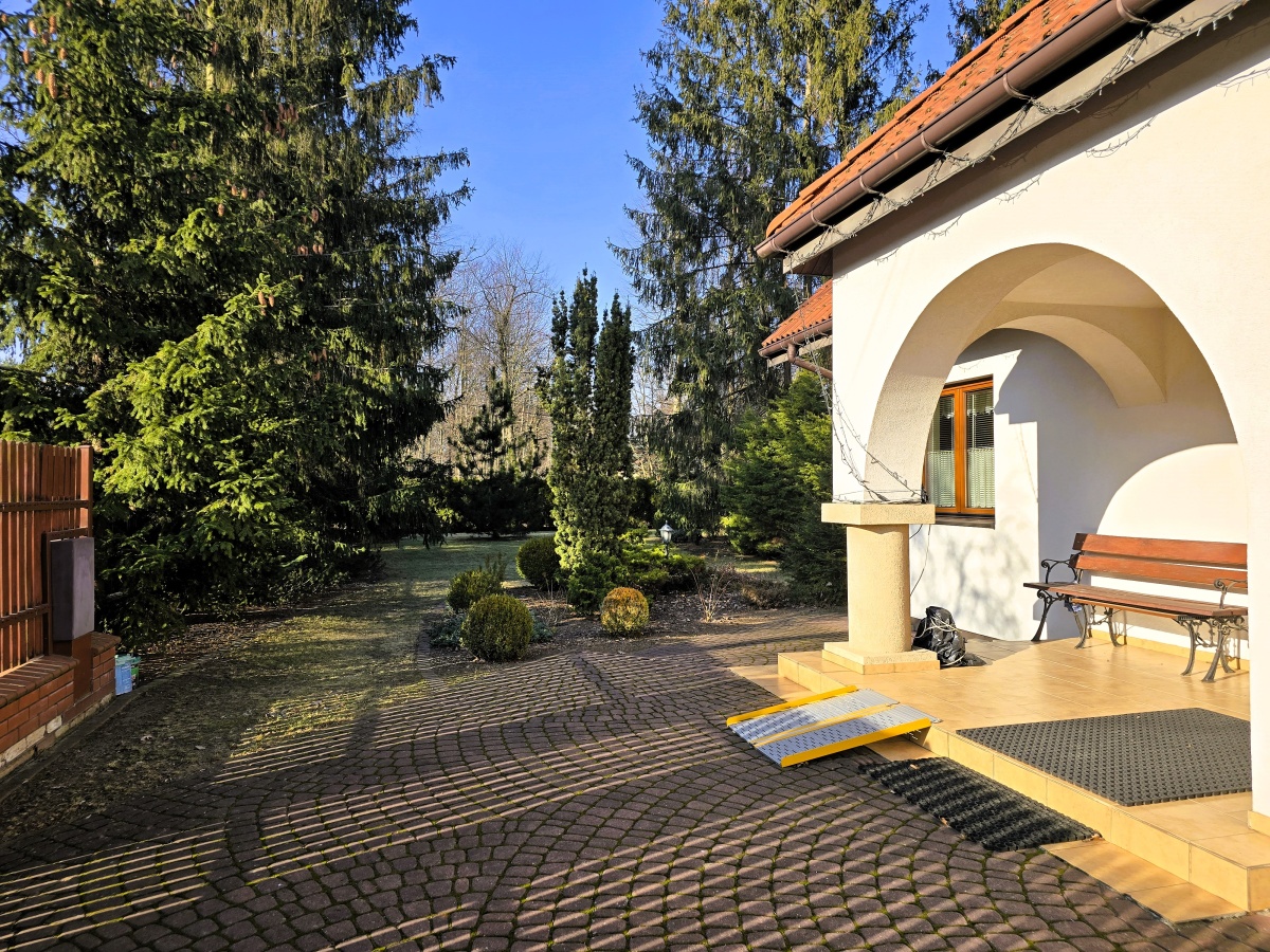 Dom pod wieloma względami jest znakomicie położony: cisza, spokój, dużo zieleni, dostęp do wygodnej komunikacji (PKP, autobus) i oczywiście zróżnicowana i bogata infrastruktura na wyciągnięcie ręki. Wybierając to miejsce możemy mieć pewność, że nie zabraknie w okolicy niczego co potrzebne jest do wygodnego funkcjonowania.