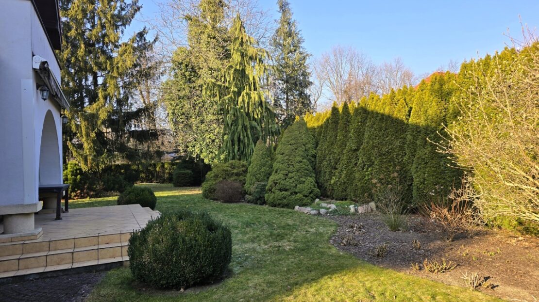 Działka ma optymalną wielkość i jest bardzo ustawna (30,5m x 38,5m) co gwarantuje nam przyjemną przestrzeń. Pomimo posadowionego okazałego domu pozostał do użytku wspaniały ogród, bardzo przemyślanie zagospodarowany, częściowo zadrzewiony, z licznymi nasadzeniami, kompostownikiem i wygodnie usytuowaną drewutnią.