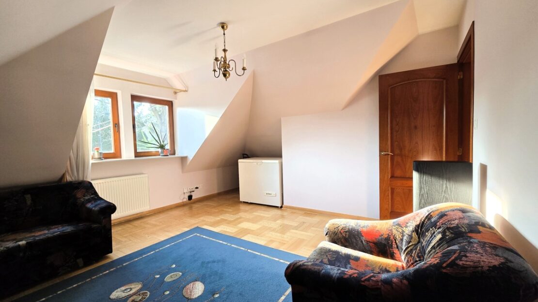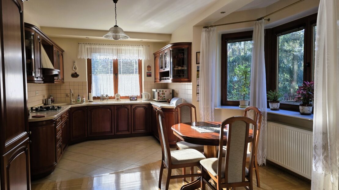 Dom utrzymany jest w świetnej kondycji. Podłogi dębowe zachowane są niemalże w idealnym stanie, kuchnia w drewnianej zabudowie z włoskiej akacji wciąż ma swój urok, drewniane okna działają bez zarzutu. Oferta obejmuje również kompletne umeblowanie i wyposażenie (w tym również dodatkowa duża zamrażalka, kosiarka, wyposażony przydomowy warsztat w garażu, telewizor).