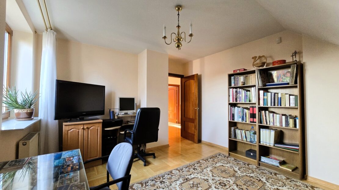 – główna sypialnia z obszerną ponad dziesięciometrową garderobą z oknem (10,30 m2) oraz z wyjściem na balkon
