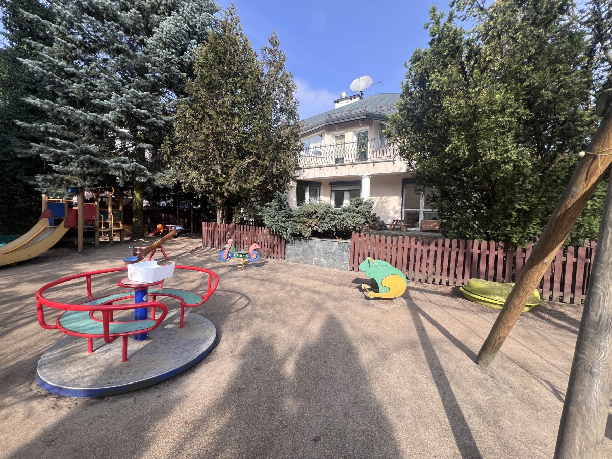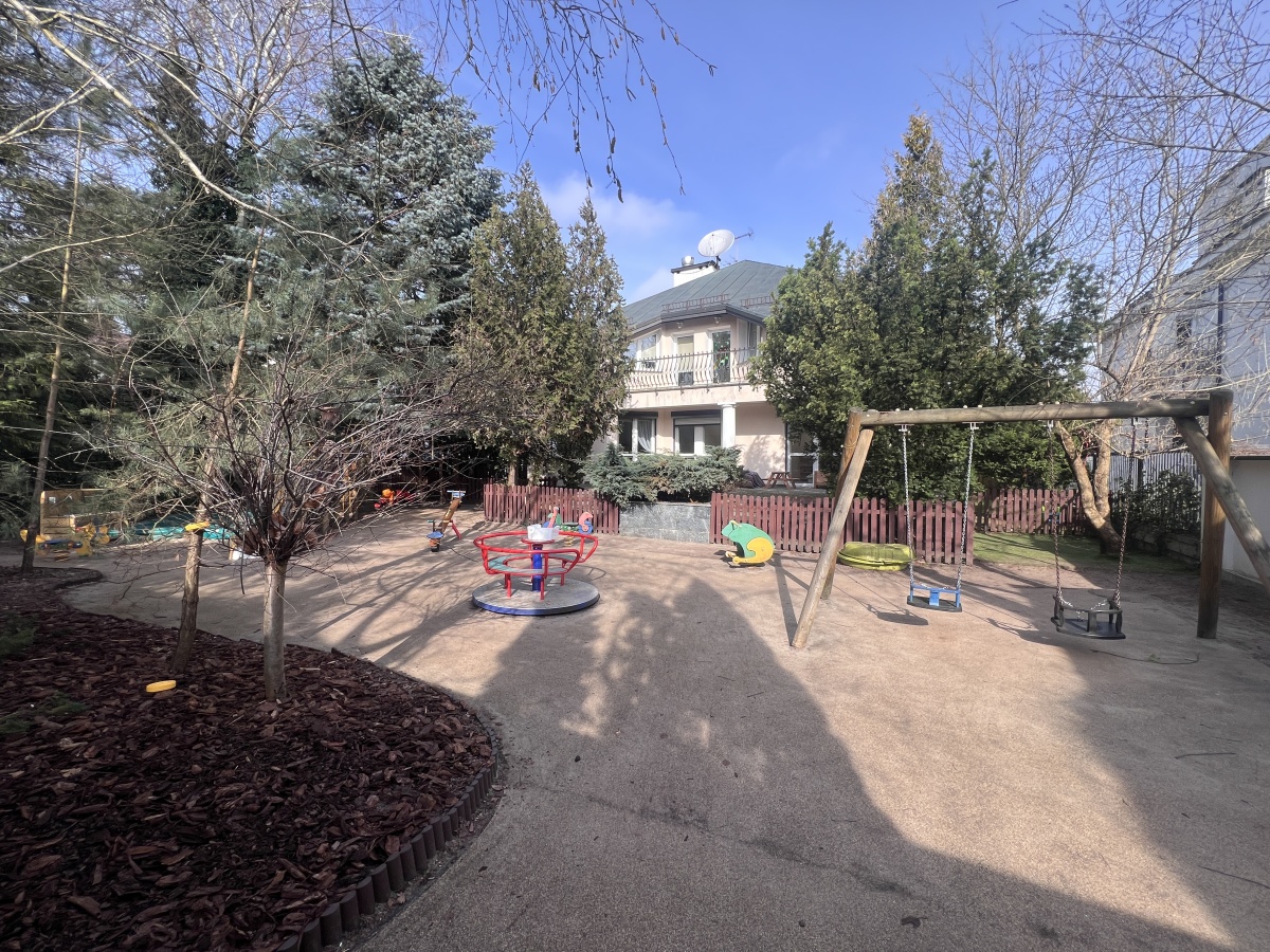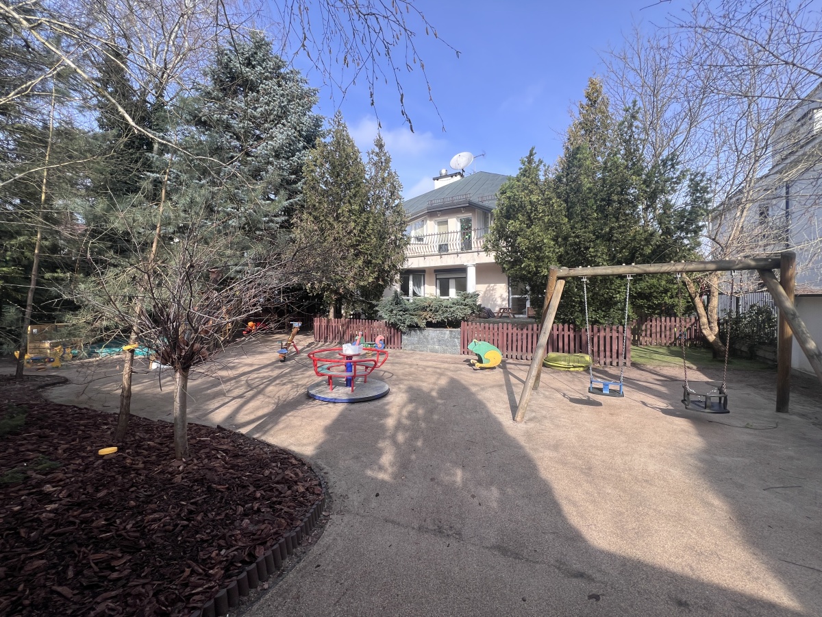 Dom o powierzchni 438 m² stoi na pięknej działce 940 m² z zagospodarowanym ogrodem i dużym, bezpiecznym placem zabaw – gotowym do korzystania przez dzieci. To miejsce, które łączy przestrzeń, spokój i prestiż lokalizacji.