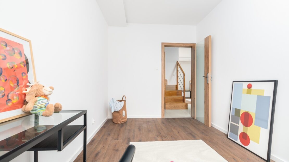 – Pokoje: 3 na dole + góra do własnej aranżacji – dodatkowa przestrzeń na biuro, sypialnię z garderobą lub pokój dla dziecka – na górę jest też doprowadzona jest woda i kanalizacja dzięki czemu można np. sobie zrobić dodatkową łazienkę lub pomieszczenie gospodarcze z pralką i suszarką itp.