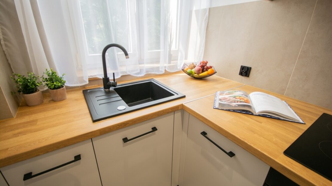 – zabudowa kuchenna według indywidualnego projektu wykonana przez stolarza