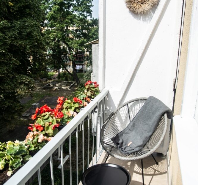 – balkon od strony południowo – zachodniej z widokiem na tereny zielone