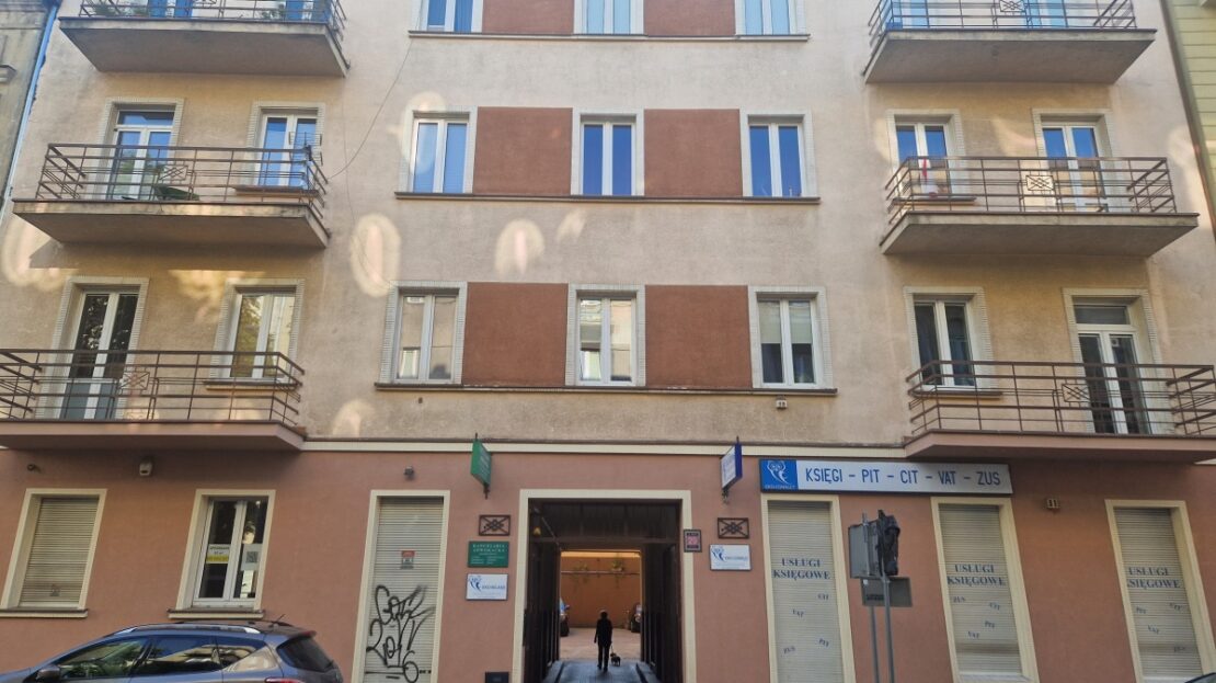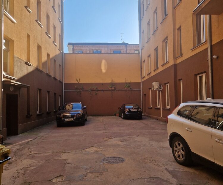 The courtyard is accessible for residents’ cars. Additionally, a guaranteed covered parking space is available just 20 meters from the building for 350 PLN/month.