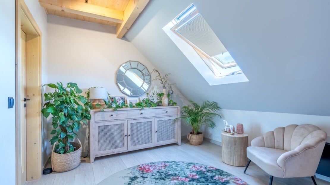 Dom jest całoroczny i ma powierzchnię 225 m2. Na parterze domu znajduje się przestronny salon z antresolą, jadalnia z otwartą kuchnią, łazienka z wanną wolnostojącą i WC, pokój gościnny, garderoba, pralnia oraz hol. Powierzchnia parteru to 130 m.