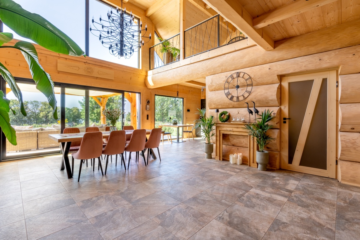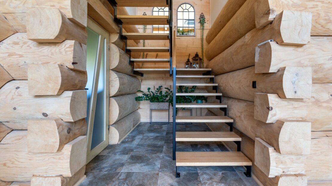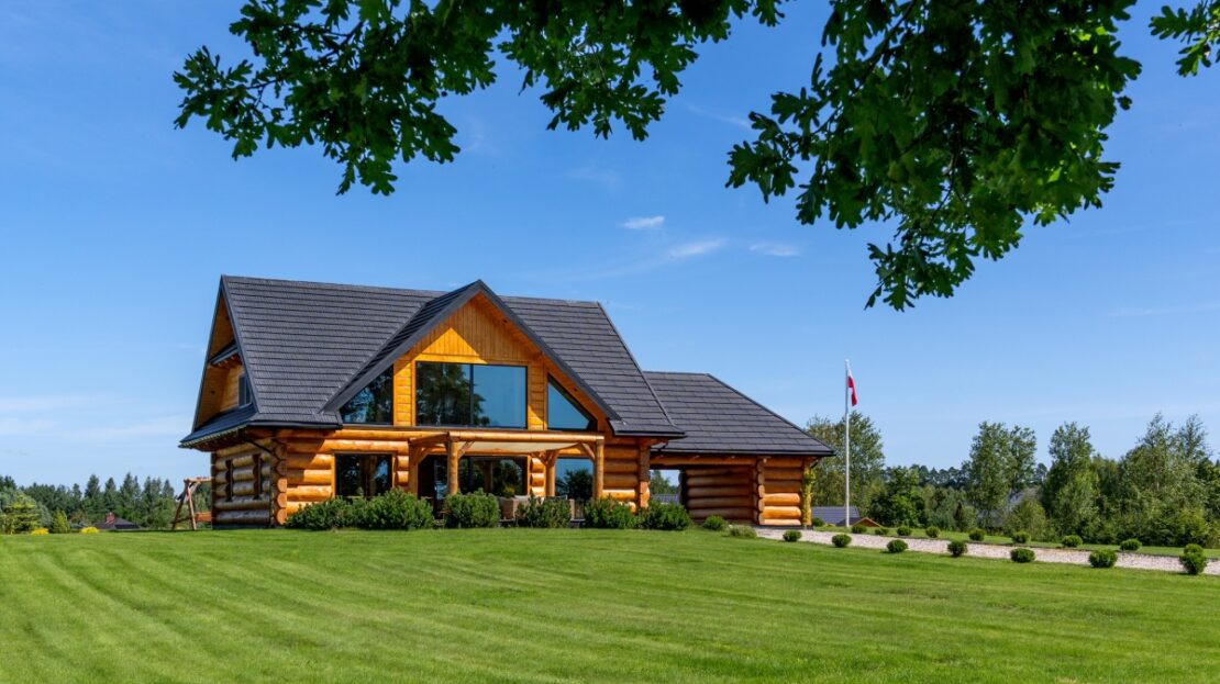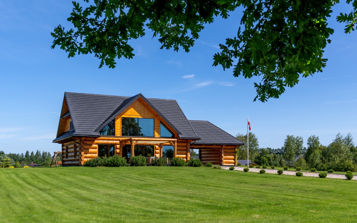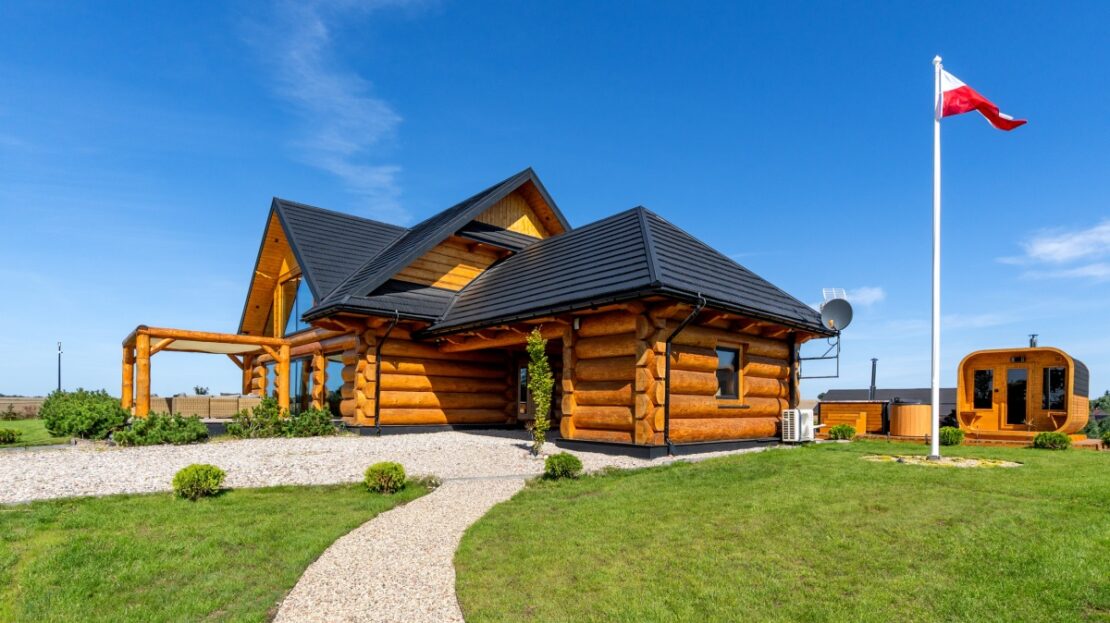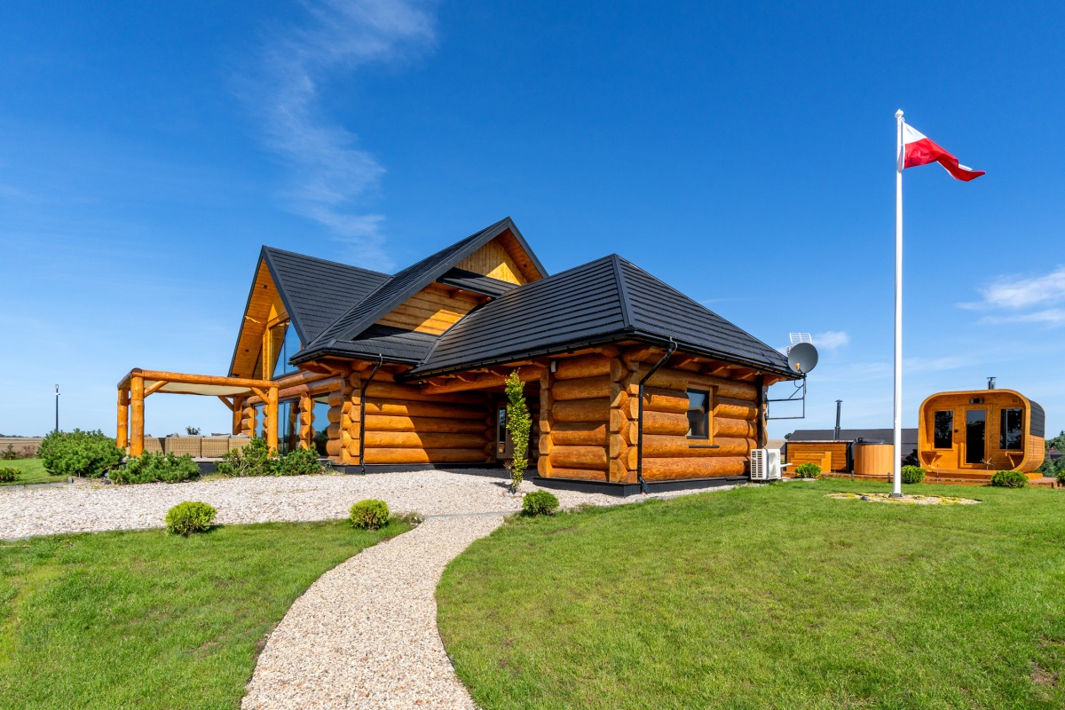 Dom został zbudowany z wysokiej jakości grubego bala świerkowego.