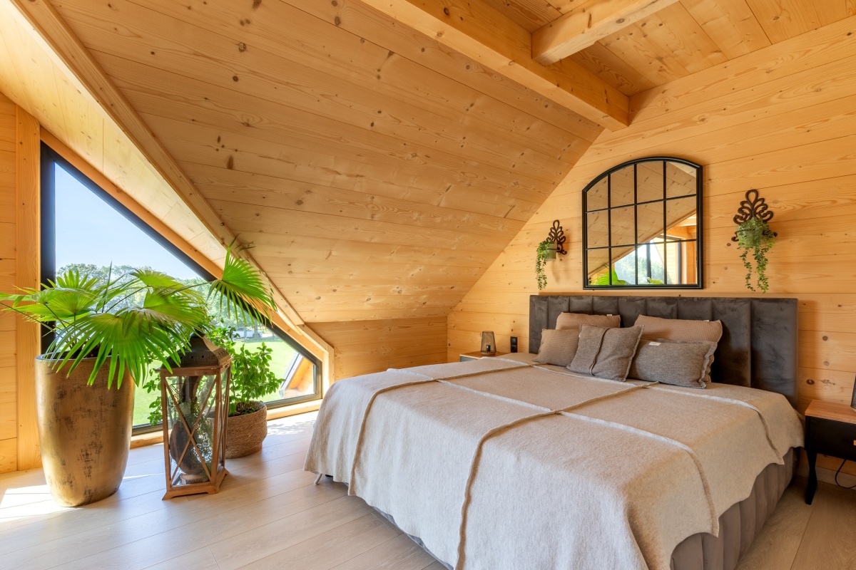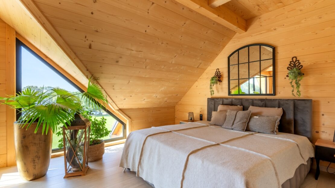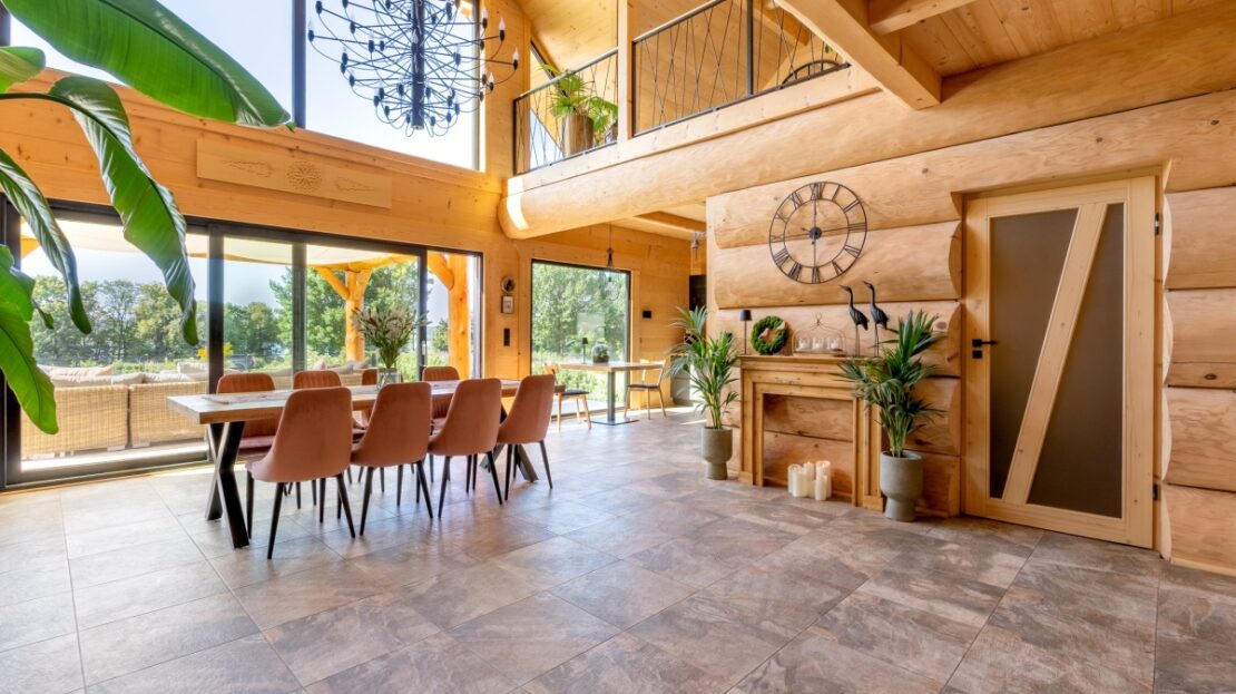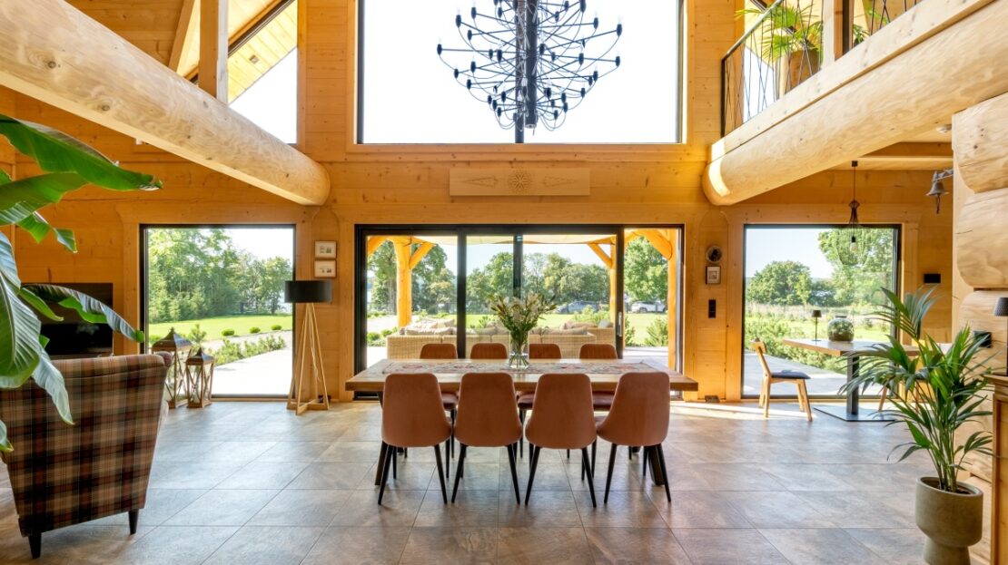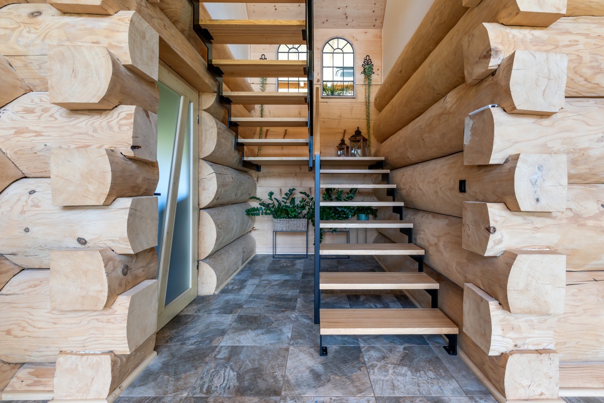 Dom został zbudowany z wysokiej jakości grubego bala świerkowego.