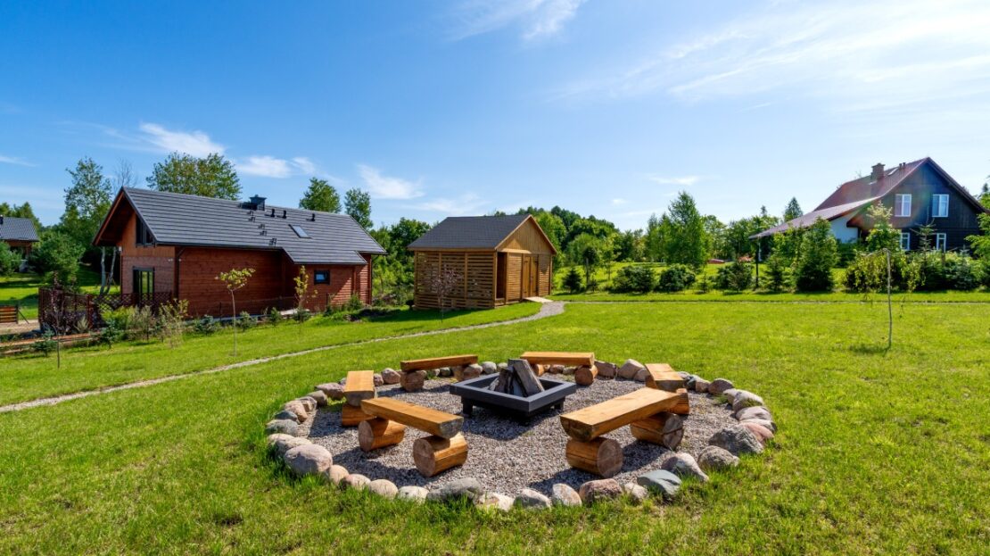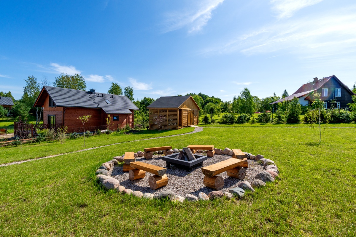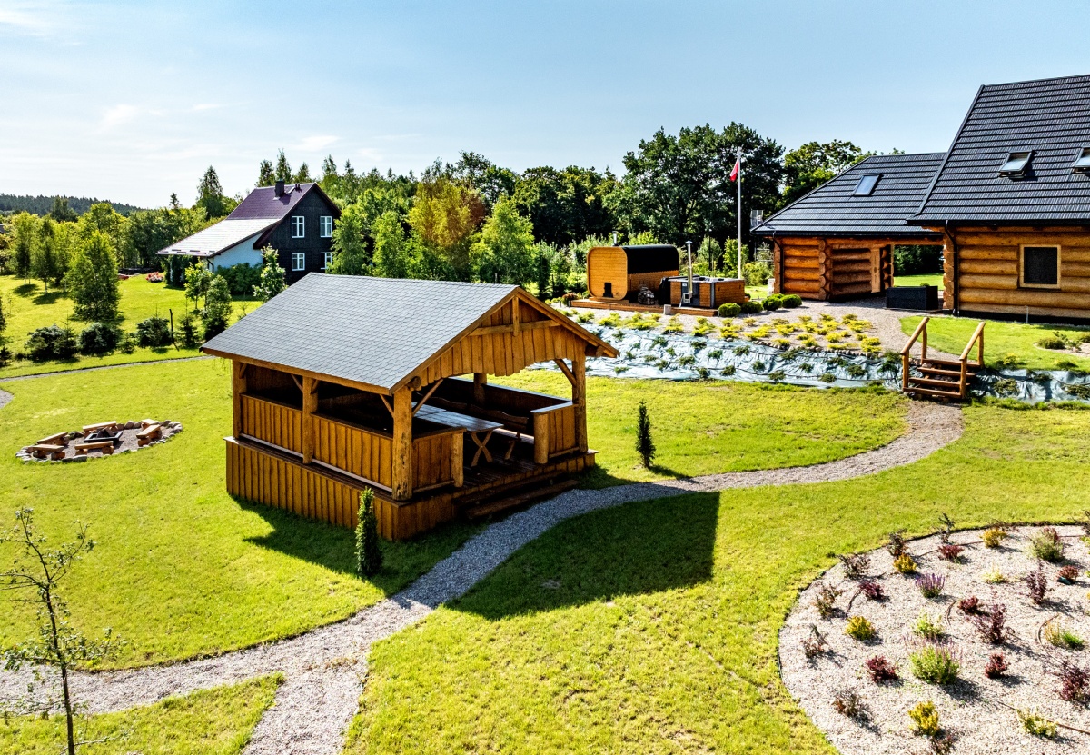 Za domem na terenie zielonym znajduje się chata grillowa zbudowana z bala, która pomieści 16 osób, miejsce na ognisko z paleniskiem oraz domek gospodarczy z drewutnią o pow 30 m.