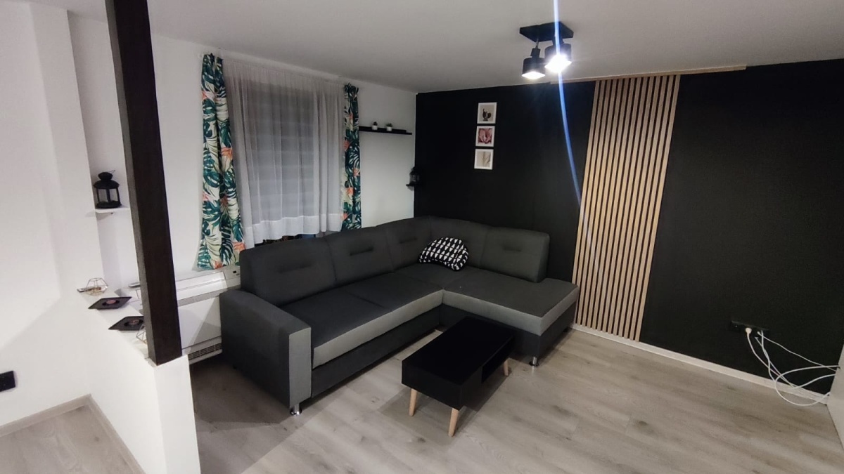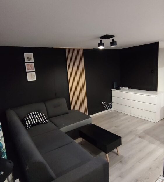 Salon z wygodną rogówką, TV, komodą pod telewizorem