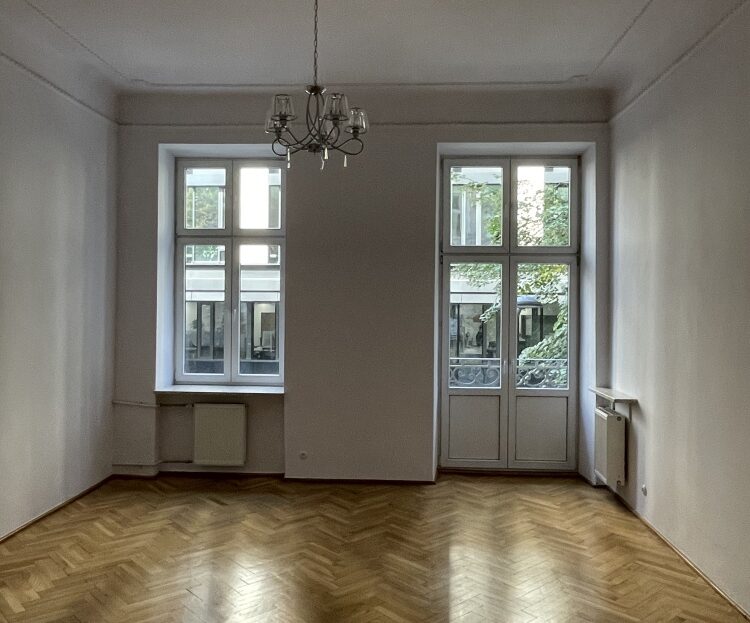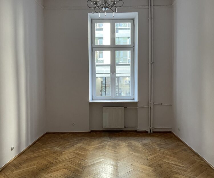 Do wynajęcia na: biuro, showroom, galerię itp. lokal o powierzchni użytkowej ponad 100 m2, 4 pokoje, jeden z balkonem, łazienka z WC, na pierwszym piętrze zabytkowej kamienicy z końca XIX w. po renowacji, przy ul. Szpitalnej w Warszawie.