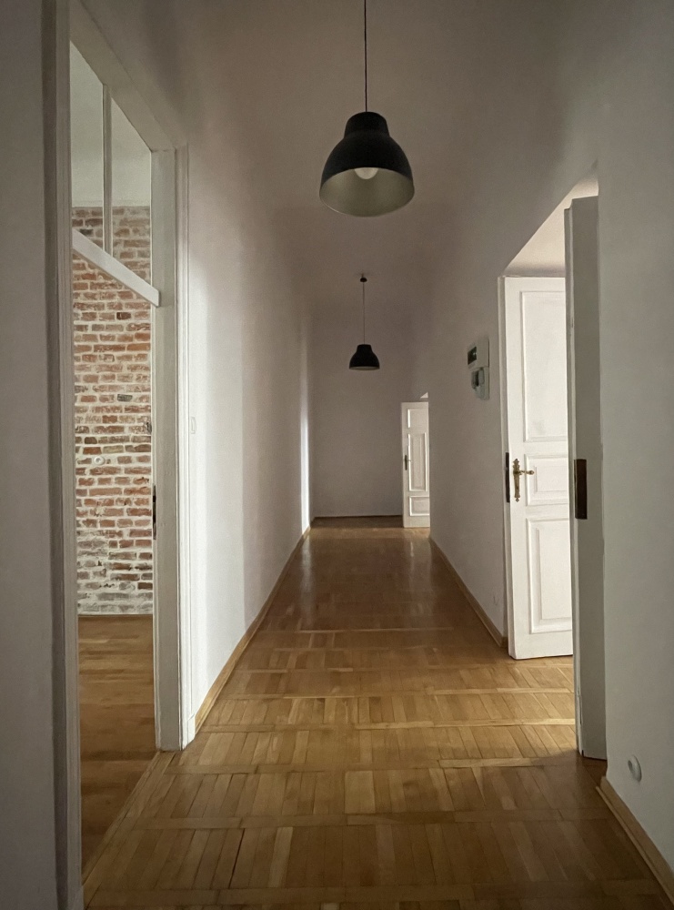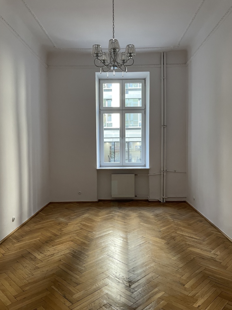 Do wynajęcia na: biuro, showroom, galerię itp. lokal o powierzchni użytkowej ponad 100 m2, 4 pokoje, jeden z balkonem, łazienka z WC, na pierwszym piętrze zabytkowej kamienicy z końca XIX w. po renowacji, przy ul. Szpitalnej w Warszawie.