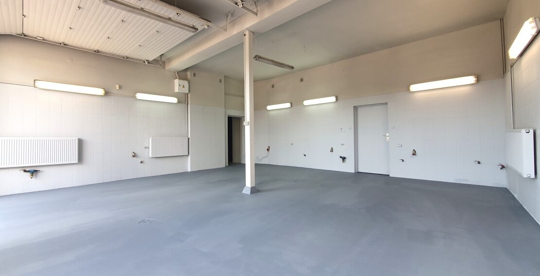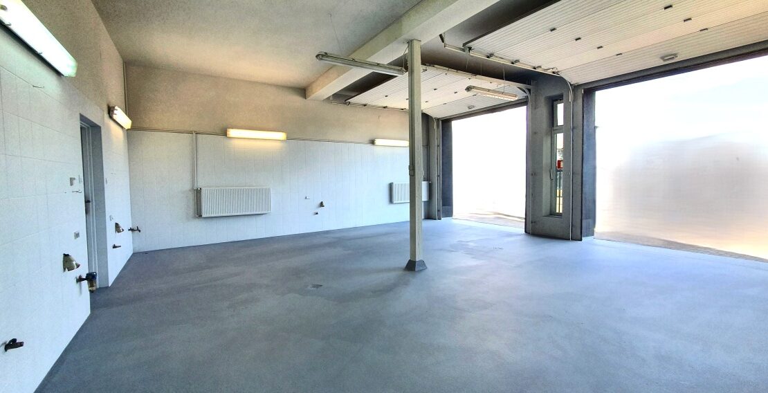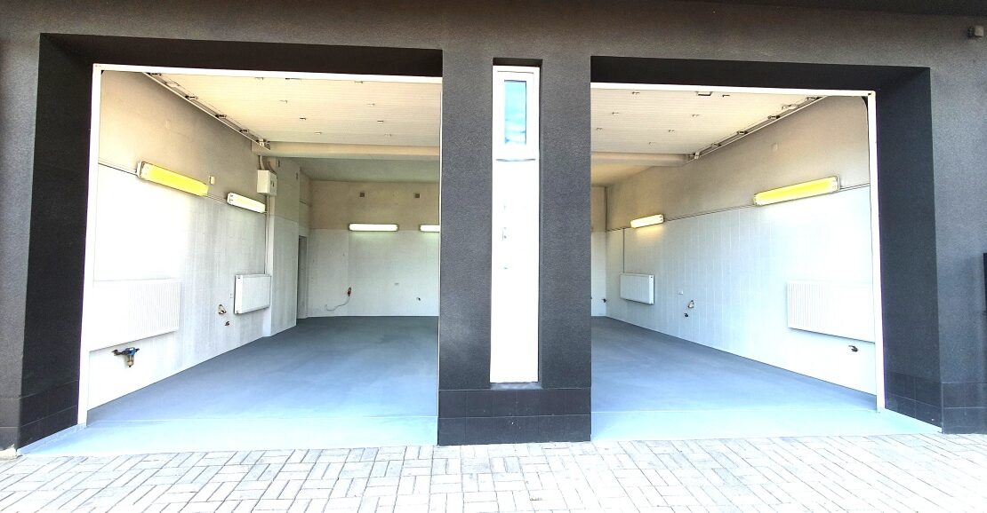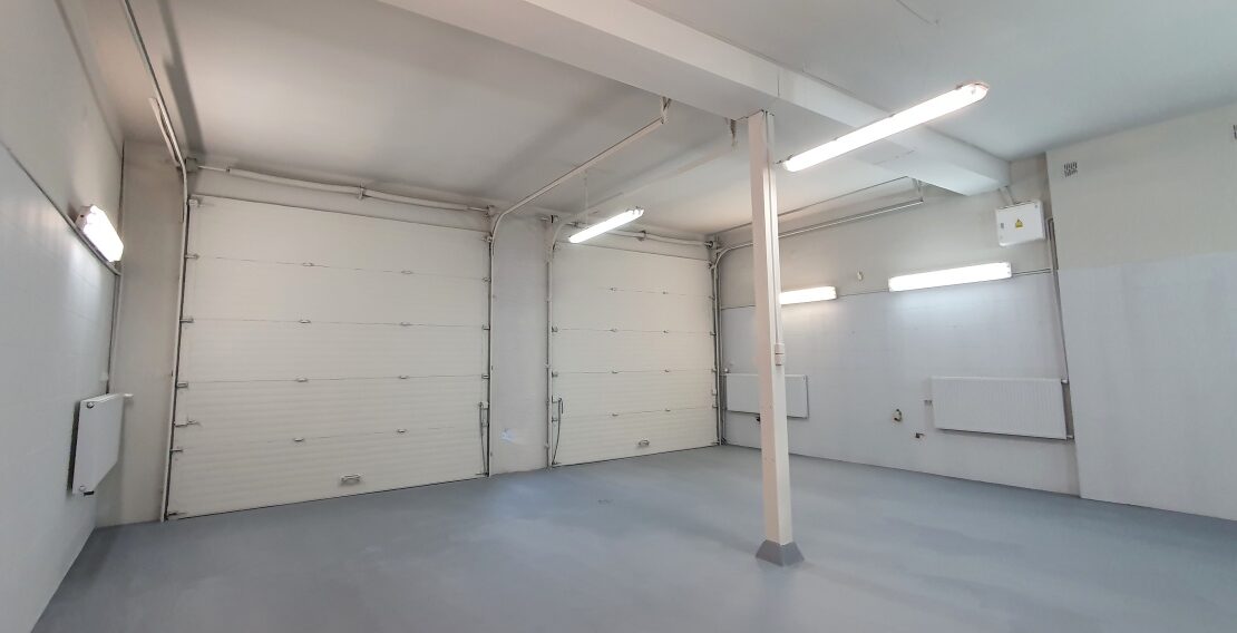 Parter – 160m2 trzy stanowiska z oddzielnymi wjazdami z możliwością powiększenia (likwidacja ściany działowej), salon – biuro ( klimatyzacja) z dużymi oknami antywłamaniowymi, WC z łazienką, pomieszczenie socjalne, mały magazynek, 400V, 230V, instalacja powietrzna. Wysokość pomieszczeń 330cm, Drzwi wjazdowe 300x300cm.