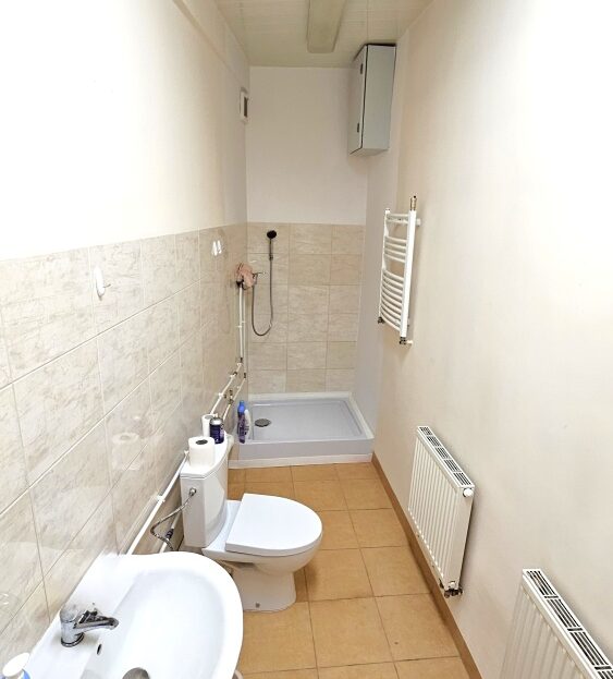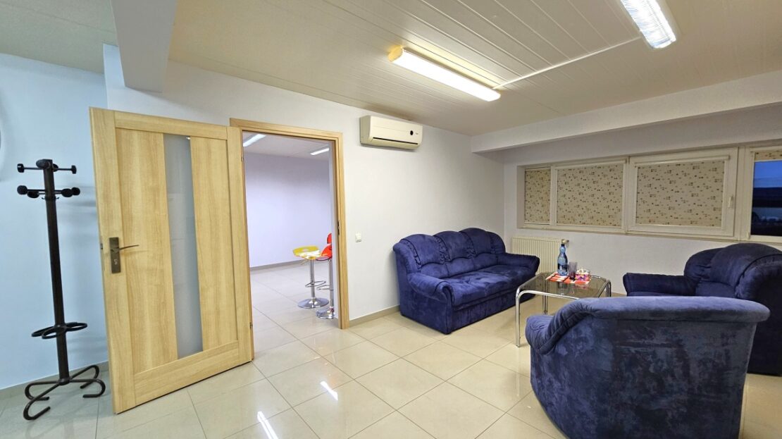 Piętro – 130m2 ( biura, magazyn) 3-ech pokoi: 2szt x31m2+22m2+12m2, 2szt x 5.5m2 WC+ prysznic, pomieszczenia socjalnego, przedpokoju z korytarzem i klatką schodową.