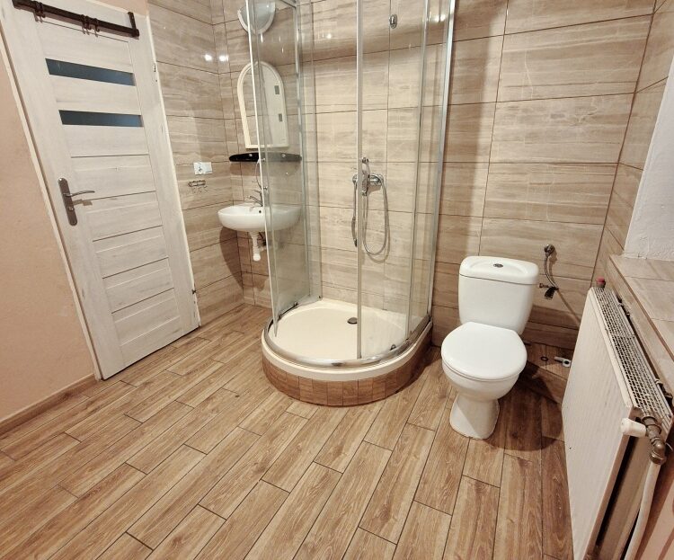 Mieszkania posiadają po 2 pokoje, kuchnia, łazienka z prysznicem i korytarz