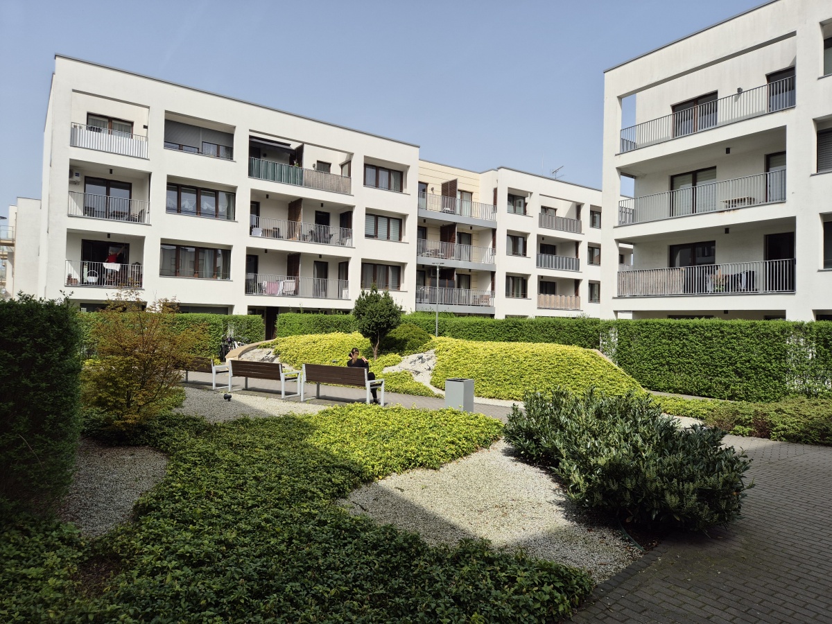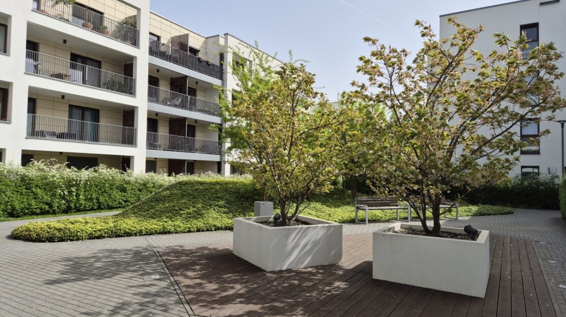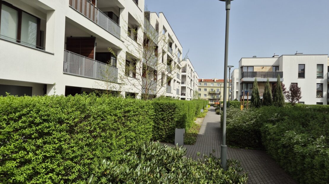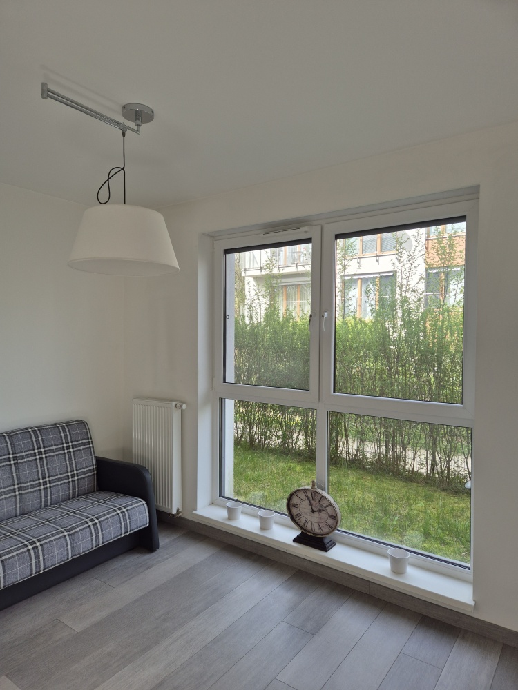 Apartament znajduje się w otoczeniu dużej ilości zieleni bezpośrednio przy parku.