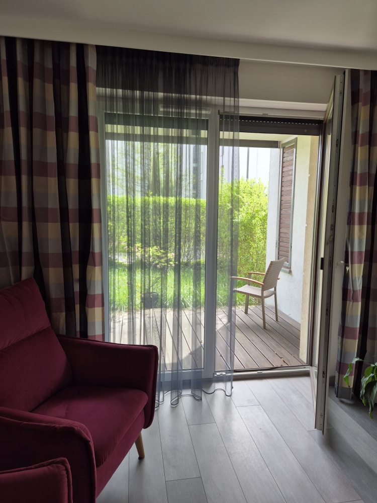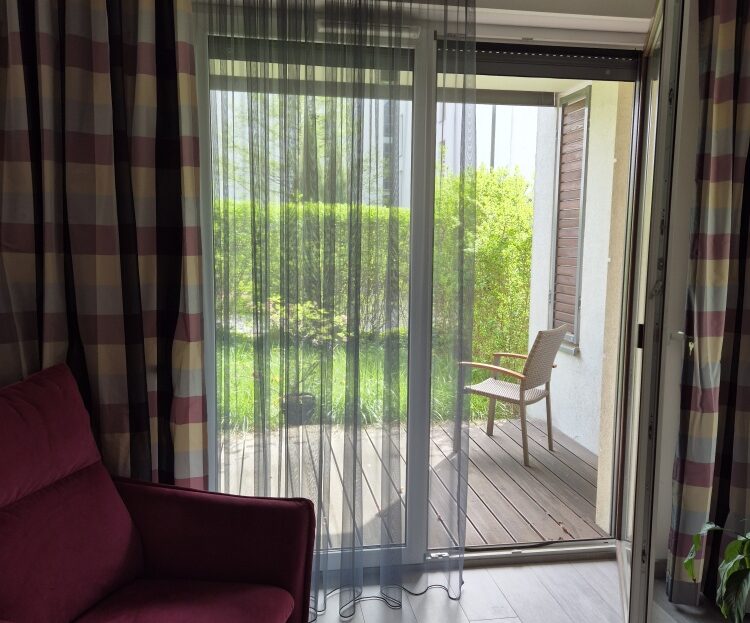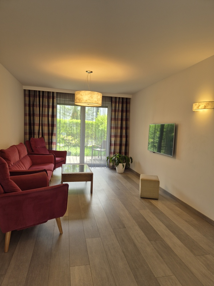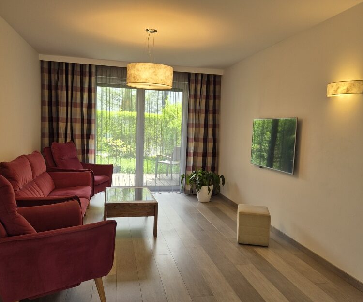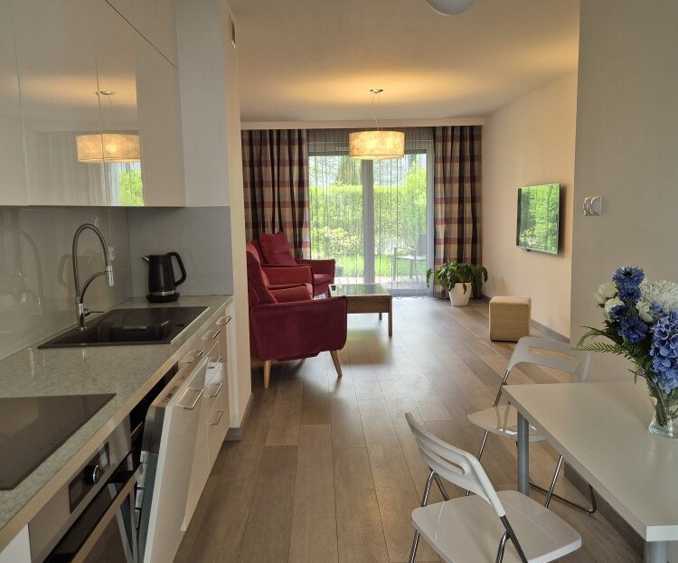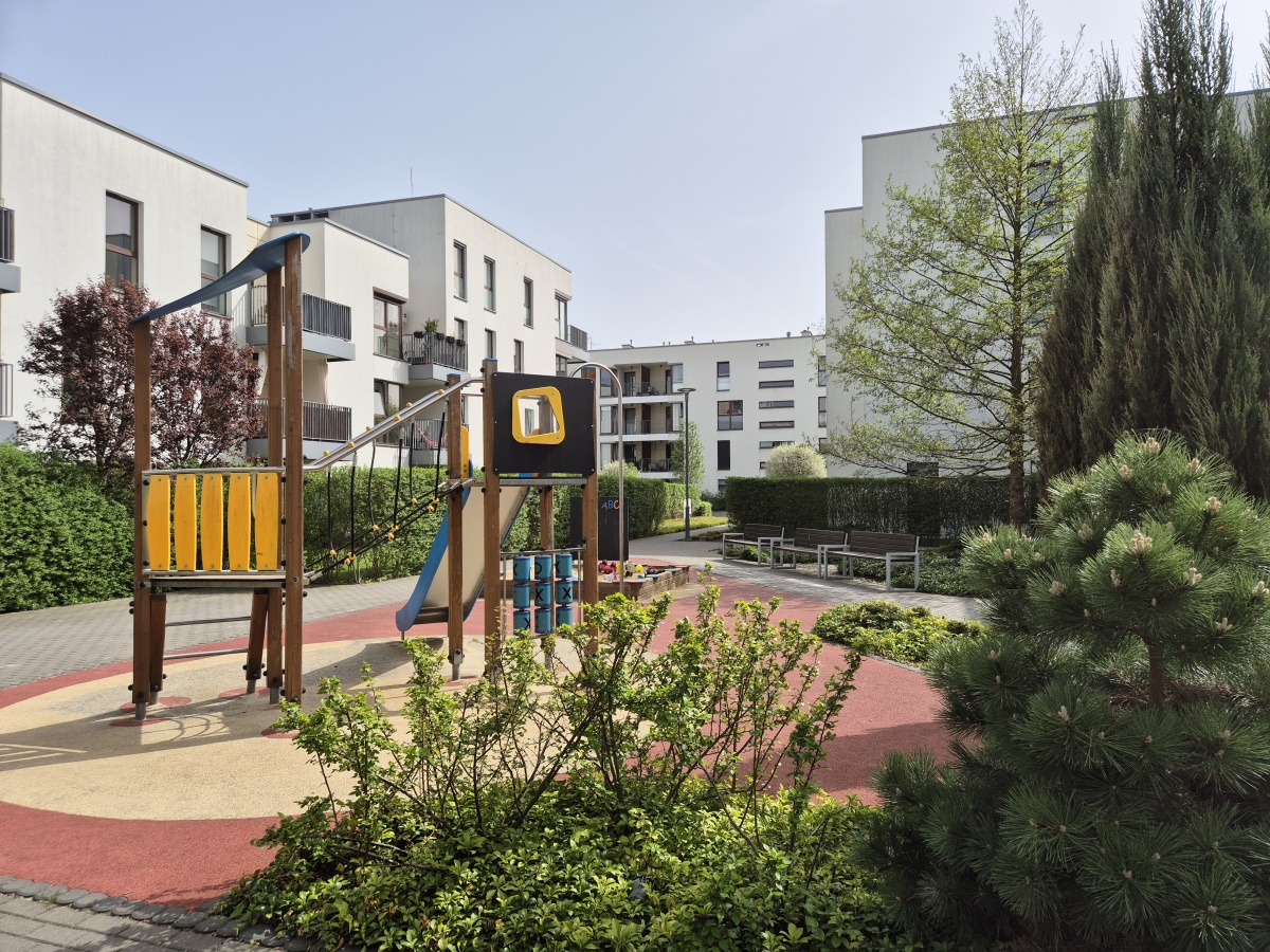 Apartament znajduje się w otoczeniu dużej ilości zieleni bezpośrednio przy parku.